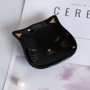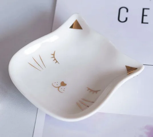 Bring a touch of whimsy to your space with this adorable sleepy cat trinket dish with pretty gold accents. It's just the right size to hold a ring or a pair of earrings on your bedside table. This cute ceramic trinket dish would make an excellent gift for cat lovers.