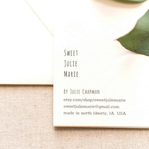 Cute little Hedgehog pushing his wheelbarrow full of plants with a little “hello” sentiment. Blank inside for your own message. INDIVIDUAL OR SET OF 6. Printed in the USA on beautiful 100# warm white card stock. A2 (4 1/4" x 5 1/2") Blank inside. Includes coordinating colored envelope and recycled kraft box. Sweet Julie Marie greeting cards are designed in my home studio and printed locally on 100# thick digital cover paper stock!