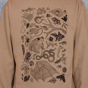 This cozy sand colored crewneck sweatshirt features sorts of sweet little bits of outdoorsy goodness in breathtaking detail sure to stir the outdoor lover’s heart. With its perfect neutral shade and comfy soft fleece interior; this sweatshirt is sure to become a staple you reach for again and again.