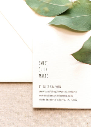 Sweet Julie Marie greeting cards are designed in our home studio and printed locally.